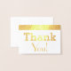 Diga Obrigado em Dourada (ou Silver) Folha em 2 tipos de Tipografia. A saudação de agradecimento está na frente da placa, a dentro é vazio para sua mensagem especial de Obrigados. A parte traseira da placa é projetada com faixas de folhas de tamanho variável.