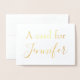 Um lindo cartão com folha dourada, este design exibe o seguinte texto de exemplo, "Um cartão para Jennifer". Por dentro há espaço em branco para deixar um recado manuscrito, texto datilografado, fotos, etc. Personalize seu cartão hoje mesmo!