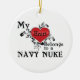 Um Enfeites de natal redondo com o texto, "Meu Coração Pertence a um Nuque Marinho.