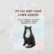 Meu gato e eu temos um novo endereço, nós nos mudamos. O meu gato preto e branco já está a gostar da nossa nova casa.