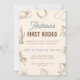 Convite Neutro para primeiro aniversario do Western First Rodeo Celebre o seu primeiro aniversário com esta estética neutra Meu Primeiro Convite Rodeo. Apresentando botas de vaqueiro desenhadas, chapéus, lassos e ferraduras em bege suave e tons castanhos, esta design rustica ocidental é perfeita para uma celebração na moda, mas brincalhona. Personalize com o nome do seu filho, os detalhes da festa e o RSVP.