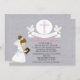 Comemore seu primeiro comunhão santamente com este convite que convida seus convidados a compartilhar deste dia especial com você. O fundo tem uma luz - fundo textured cinzento. Na parte superior no centro há "meu primeiro comunhão" que é uma bandeira guardarada por pombas em cada lado. É no centro um círculo branco com cruz cor-de-rosa aceso. Há uma menina de cabelo marrom que veste um vestido branco bonito que ajoelha-se guardarando uma bíblia. Adicione seu partido que a informação no centro desta convida. Este convite é completamente customizável escolhendo seus cor, estilo, e tamanho da pia batismal.