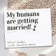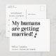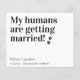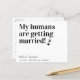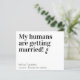 Meus Humanos Estão Se Casando! Deixe o seu melhor cachorro anunciar seu casamento com este cartões salve a data de cachorro de estimação moderno e simples "Meus Humanos se Casam". Personalize com nomes, data e local do casamento. Este casamento com cães salve o anúncio da data será um sucesso para a sua família e amigos. COPYRIGHT © 2020 Judy Burrows, Black Dog Art - Todos Os Direitos Reservados. Meus Humanos Estão Casando Cachorro Salve O Cartão-Postal