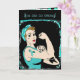 Myasthenia Gravis Greeting Card que diz "Você é tão forte, mesmo que não se sinta assim dentro, você é um verdadeiro guerreiro." Você pode editar o texto na área personalizada para dizer o que quiser.