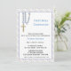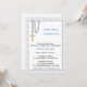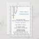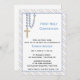 Convite religioso com fronteira azul e diagonal clara e miçangas rosárias azuis com cruz de ouro. Pode ser personalizado para batismos, batizações, uniões ou confirmações.criado com algum trabalho artístico original ©delightful-doodles.com