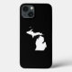 A forma do estado de Michigan em preto e branco. Altere a cor de fundo ou adicione uma mensagem de texto de souvenir personalizada.