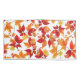Autumn Midnight, mostra um padrão vibrante de folhas do outono em um fundo preto. As folhas são uma mistura de tons vermelhos, laranja, amarelo e dourados, representando uma variedade de espécies como carvalho, carvalho e castanheiro. "o contraste entre as cores vívidas das folhas e o fundo escuro cria um efeito marcante e dramático, enfatizando os tons quentes e o detalhe intrincado da folhagem. folhas menores, bolotas e galhos são espalhados ao longo, acrescentando profundidade e textura ao padrão. A design tem um sentimento enérgico e festivo de uma noite viva de outono.