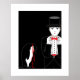 Um mímico em um smoking preto e branco e vestindo uma gravata vermelha de arco olha para um pinguim que está tendo dificuldade em amarrar sua gravata vermelha de arco. O estilo gráfico faz desta arte uma peça divertida para ficar em um escritório, sala de crianças ou toca. Mime Pengun vai com o companheiro Mime Zebra.