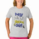 Camisa divertida para fãs de vôlei. O texto diz "Minha Camisa de Voleibol" e tem uma ilustração de um vôlei no canto inferior esquerdo, com a silhueta de volta de vôlei no canto inferior direito. Isto mostra a camisa de uma criança, mas ela está disponível em várias cores, tamanhos e estilos.