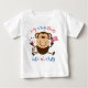 O macaco adorável diz que é o meu primeiro 4 de julho. Ele está todo escondido segurando a bandeira americana e um faísca explodindo com estrelas. Texto vermelho e branco. Em T-shirts e presentes. PinkInkArt original!
