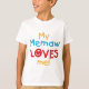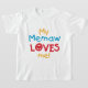Meu Memaw me ama T-shirts, fatos-chave, cartas, adesivos, sacos para cartazes, ímanes, adesivos e outros Dons me ama, e me ama com um design de texto azul, vermelho e amarelo.