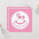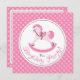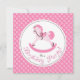 Bonito convite de aniversário de cavalo de balanço com bolinhas rosa.