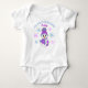 Adicione o nome do seu bebê a esta Camiseta de Bebê personalizada do Meu Primeiro Natal com Boneco de Neve e Flocos de Neve roxos e azuis