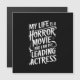 A tipografia preto-e-branco robusta apresenta a linha "My Life Is a Horror Movie and I Am the Leading Atriz" (Minha vida é um filme horroroso e eu sou a principal), perfeita para convites para o Halloween, presentes na época assustadora e mini arte pronta para o frigorífico para fãs de horror. Impresso em estoque de 14 pontos com laminação brilhante vinílica e impressão vibrante a cores de cheio; disponível em tamanhos populares como 5 x 7 e 5,25 x 5,25 para uso flexível. O suporte magnético mantém a mensagem visível nos frigoríficos e nas superfícies metálicas, fazer-a de uma guarnição memorável que "cola" muito depois do evento.