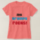 Minhas camisetas Grampy Rocks, cartas, adesivos, sacos de tote, ímãs, botões e outros itens com um design de texto preto, azul e vermelho. Estes itens do My Grampy Rocks são uma forma excelente de mostrar o seu amor pela sua vovó especial!