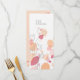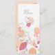Menu de janto de recepção de casamento floral, simples e de dupla face, com estilo petal de flor moderno, em laranja, cinza, vermelho-rosa e branco. ©BELGA_PHOT