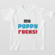 Minhas camisetas Poppy Rocks, cartas, adesivos, sacos para tote, ímãs, botões e outros itens com um design de texto preto, azul e vermelho. Estes itens do My Poppy Rocks são uma forma excelente de mostrar o teu amor pela tua papoila especial!