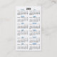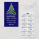 Calendário pequeno acessível do tamanho do cartão de visita a distribuir aos amigos e aos colegas. A parte dianteira é uma árvore de Natal dos arty de um design abstrato digital original com ouropel, festão e ouro e ornamento azuis. O fundo é azul profundo do Natal, mas pode ser mudado à cor de sua escolha clicando Customize se você deseja. Mude facilmente a mensagem e sua informação do negócio. Os mini calendários são apreciados sempre como acréscimos pequenos para deslizar no saco de compras do seu cliente ou os cartões ou os presentes.