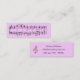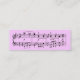 Mude o fundo da lavanda a toda a cor de que você gostar! Aperfeiçoe para o músico ou o melómano, este cartão de visita magro caracteriza algumas medidas da música vívida na parte dianteira. No reverso, um clef de triplo de brilho e um modelo para sua informação do nome e do contato, ou qualquer outra coisa que você gostaria de imprimir. Dobros agradàvel como uma marca de livro! Para mudar a cor do fundo, apenas o clique "personaliza", a seguir "edite", "fundo".