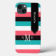 Este gabinete personalizado preto, branco, cor-de-coral e azul-lacrimejo Mate Mal Ali Mini Retina tem um padrão de fundo bem negrito e uma faixa preta com costura branca que pode adicionar seu nome, iniciais, monograma ou outro texto. Este novo caso moderno e moderno faz uma declaração chic para o jovem motista da quadra! Se precisar de assistência, envie um email para niteowlstudio@gmail.com.