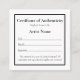 Placas de Certificado de Autenticidade miniatura personalizáveis para trabalho de arte em um design preto quadrado.