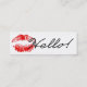" Olá!!" no roteiro simples e na marca vermelha do batom, contra o fundo branco. Cartão de visita preto e branco simples e elegante para o negócio ou o uso pessoal.