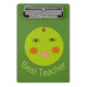 Esta incrível miniprancheta apresenta uma maçã verde brilhante com um sorriso largo e bochechas vermelhas rosadas. Há texto abaixo da maçã que diz melhor professor.