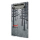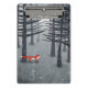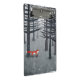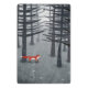 Uma única raposa vermelha selvagem fica debaixo dos pinheiros numa floresta escura. Para a natureza, a vida selvagem e amantes de os animais.