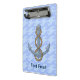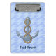 Âncora com ilustração de corda sobre o fundo uniforme azul claro das ondas. Texto personalizado.