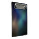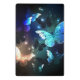 Fabulosa, brilhante, azul e amarela, borboleta noturna sobre fundo escuro.