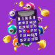 Placa Bingo Púrpura Mini Área de Transferência Fundo púrpura Escuro com um cartão bingo mais claro, um centro vermelho presente e pequenos chips bingo. Excelente de segurar suas abas e jogos laterais ou só porque você gosta de B I N O