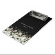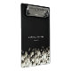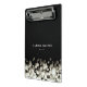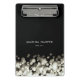 A área preta chic apresenta duas linhas de texto personalizado em modernas letras brancas, realçadas por uma borda inferior de luzes luminosas de bokeh em tons de branco e champanhe. Design repete-se no lado oposto. Observe que esta área de transferência é um tamanho mini; a versão do tamanho do cheio também está disponível em nossa coleção do Champagne Spark.