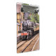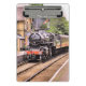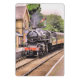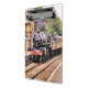 Um design de arte de um belamente restaurado trem a vapor e carruagems.