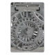 Um design fotográfico das rodas de um modelo inicial de um trem a vapor.
