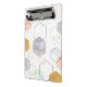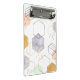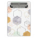 Hex Scatter I de Gabrielle McClure. Hexágonos de várias formas e designs espalhados sobre um fundo branco.