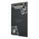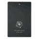 A área de transferência personalizada chic da ilha apresenta duas linhas de texto personalizado em caracteres brancos clássicos, sobre um fundo preto macio adornado com uma ilustração floral de hibisco tropical em folha de prata falsa. O lado inverso mostra uma variação no design com uma flor menor e seu texto personalizado. Observe que esta área de transferência é um tamanho mini; a versão do tamanho do cheio também está disponível em nossa coleção Hibiscus.