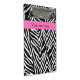 Impressão de zebra branca e preta. O design apresenta um padrão zebra preto-e-branco e uma banda rosa-quente no meio do seu texto personalizado.