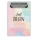 A gentle nudge to start where you are—this “Just Begin” quote design is set against a dreamy pastel watercolor background.