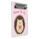Esta incrível mini prancheta apresenta uma imagem de arte digital de um adorável ouriço-cacheiro bebê menina marrom espinhoso com pálpebras rosa segurando um coração rosa lindo. Um ótimo design para celebrar uma menina bebê. Há texto personalizado para que você possa personalizar este design com uma mensagem.