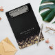 A área de transferência em preto chic apresenta duas linhas de texto personalizado em letras brancas modernas, acentuadas por faixas negras de luzes de cordas douradas com um efeito borda desfocado. Design repete-se no lado oposto. Observe que esta área de transferência é um tamanho mini; a versão do tamanho do cheio também está disponível em nossa coleção Luzes do Ouro.