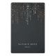 A área de transferência dinâmica apresenta duas linhas de texto personalizado em letras brancas clássicas em um plano de fundo preto suave e rico, com linhas verticais de luzes de cordas de folhas rosa douradas falsas em cascata a partir do topo. Design repete-se no lado oposto. Observe que esta área de transferência é um tamanho mini; a versão do tamanho do cheio também está disponível em nossa coleção de Marquee Dourado do Rosa.