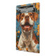 Mini Prancheta Marrom e Cachorro Branco e Flores