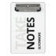 Modern minimal black and white mini clipboard featuring bold “TAKE NOTES” typography and a customizable name. Clean, functional design ideal for writing, planning, reminders, and everyday tasks. Perfect for students, office use, and personalized gifts.