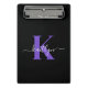 Esta miniprancheta preta simples, elegante, 9 x 6, com seu primeiro nome em uma letra de script de tendência em branco digitada sobre sua primeira inicial em uma fonte moderna de boné em roxo é perfeita para você. É na moda e moda e, no entanto, muito clássico. Será útil em tantas situações. Perfeito para o trabalho, casa, escola.
