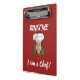 Cabeça de chef com chapéu, corcunda vermelha e texto personalizado.