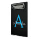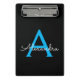 Mini Prancheta Nome do Monograma Girly de Script Preto Azul