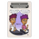 Uma miniprancheta com um desenho engraçado sobre o escrevendo de redação. O plano de fundo, a imagem e o texto podem ser personalizados. Arte original de DBcartoons.