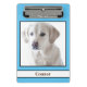 Esta prancheta personalizada deixa-o mostrar fora seu cão ao tomar notas em todos seus eventos. Você pode escolher toda a cor do fundo (mostrada aqui nos azuis bebés) que você gosta para a parte dianteira e a parte traseira. Inteiramente customizável com seus próprios foto e texto. Mude o texto para refletir qualquer coisa que você gosta, das datas importantes da mostra às realizações ou aos prêmios notáveis recebidas.