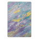 Quiet Reign is an abstract piece defined by its soothing, cool color palette and energetic brushwork. The painting features diagonal sweeps of soft lavender, tranquil aqua, and deep violet, punctuated by bold, shimmering metallic gold accents. The overall effect is one of serene motion, like a gentle rain shower illuminated by a hidden golden light. This artwork adds a touch of modern, peaceful sophistication to any space or product.