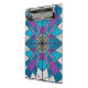 Mantenha o Vidro Azul, Púrpura, branca e amarela em um lindo padrão geométrico de raios externos é certamente inspirador. Criado pelo nosso talentoso artista Kurt Keller, com esta arte, decorando você ou sua casa, ou escritório, você certamente se sentirá otimizado.
